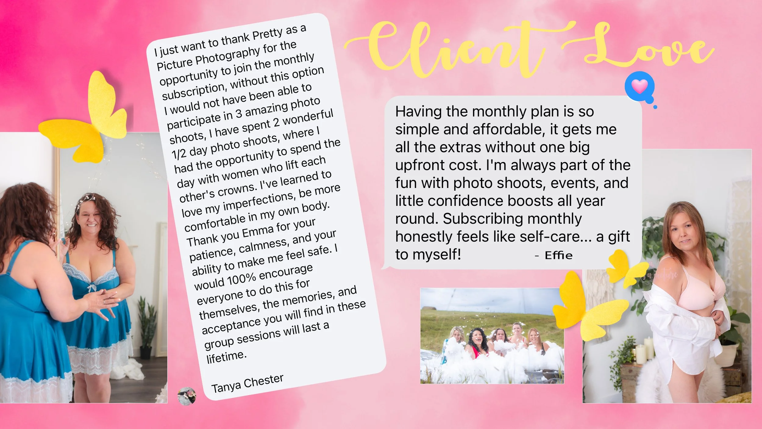 Choose a subscription package that supports you in creating confidence, embracing your beauty, and celebrating YOU, inside and out.